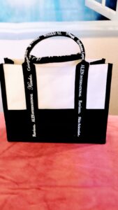 文字部分は刺繍で、内側にはコーティングが施されています。大きさも手持ちに丁度いい感じです!